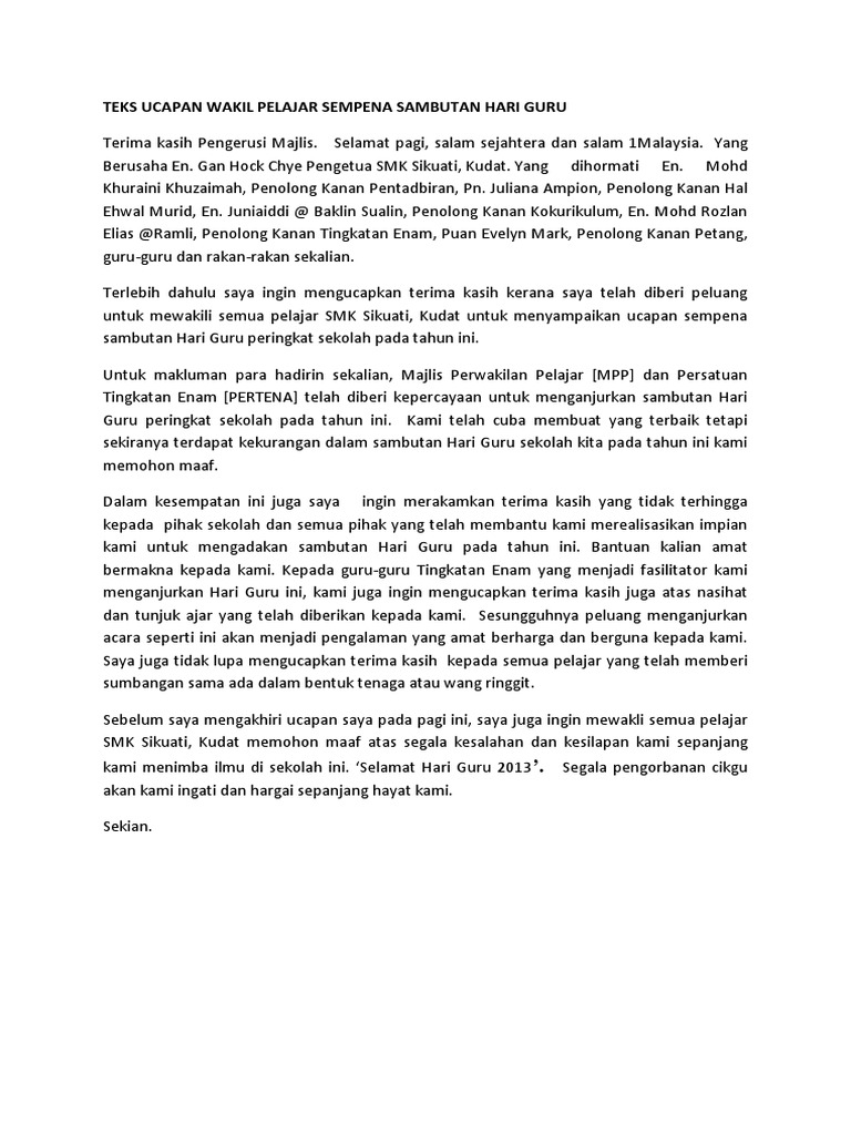 Teks Ucapan Wakil Murid Hari Guru Pdf