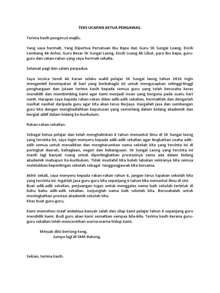 Teks Ucapan Ketua Pengawas Pdf